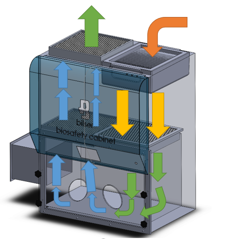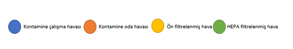 - Kabinde HEPA filtre ile hava akışı sağlanır. Ana ve egzoz olmak üzere 2 ayrı HEPA filtre içermektedir. Ana HEPA filtre genişliğine ve derinliğine tüm tavan yüzeyini kaplamaktadır. HEPA filtre ömrünün sona ermesi ya da tıkanması durumunda devreye girerek kullanıcıyı uyaran sesli ve ışıklı alarm sistemi vardır. Filtreler disposable olup, gerektiğinde teknik ekip trafından kolaylıkla değiştirilebilmektedir.